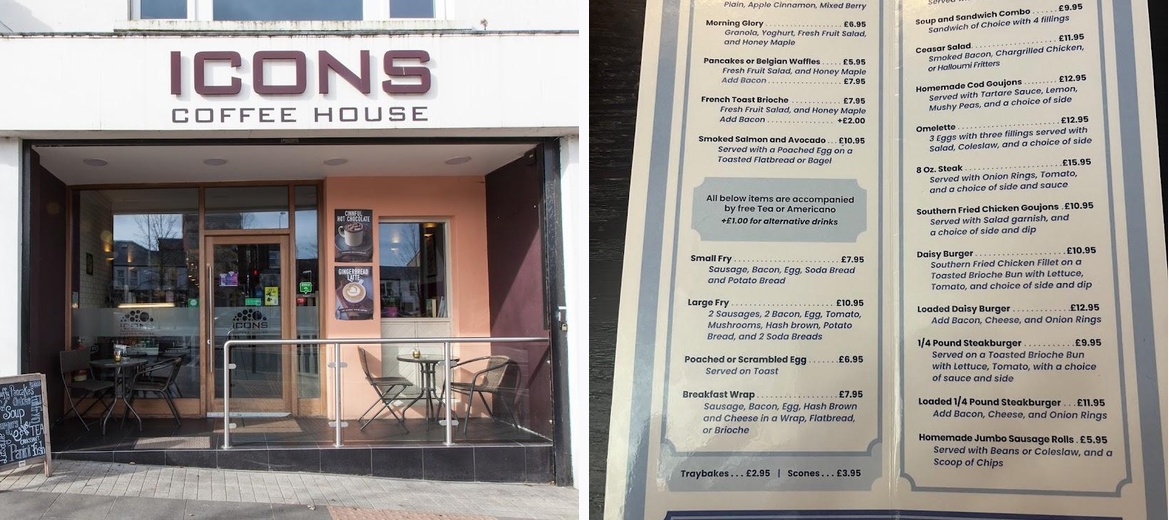 Icons is a must-visit for anyone in Lurgan. The combination of great food, an inviting atmosphere, and friendly service makes every trip enjoyable. If you love coffee, stopping by for a cappuccino is essential; it’s a crowd favorite that won’t disappoint.