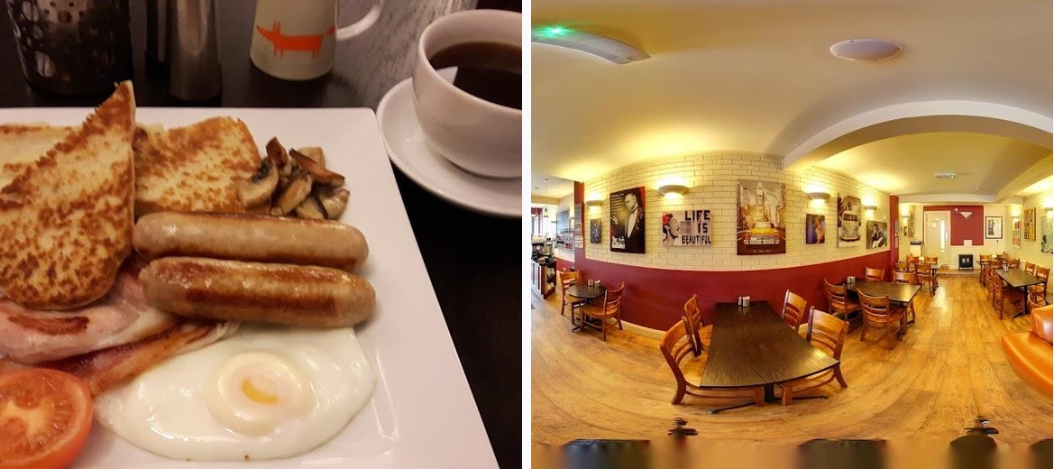 We had breakfast here this morning. There is a good level of choice on the menu. We had the large fry, porridge and pancakes with coffee. Great value of £21.