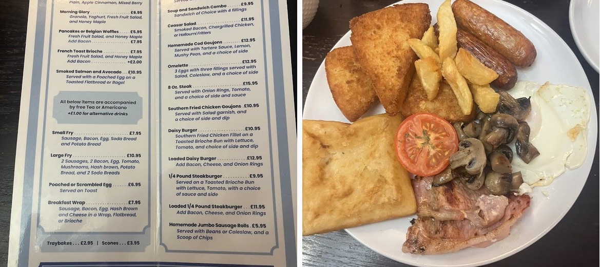 Friendly and helpful staff. Tasty food. Highly recommend the vegetarian fry and the omelette. Generous portions! There's always good 50s/60s music playing which creates a good atmosphere! Great wee spot!