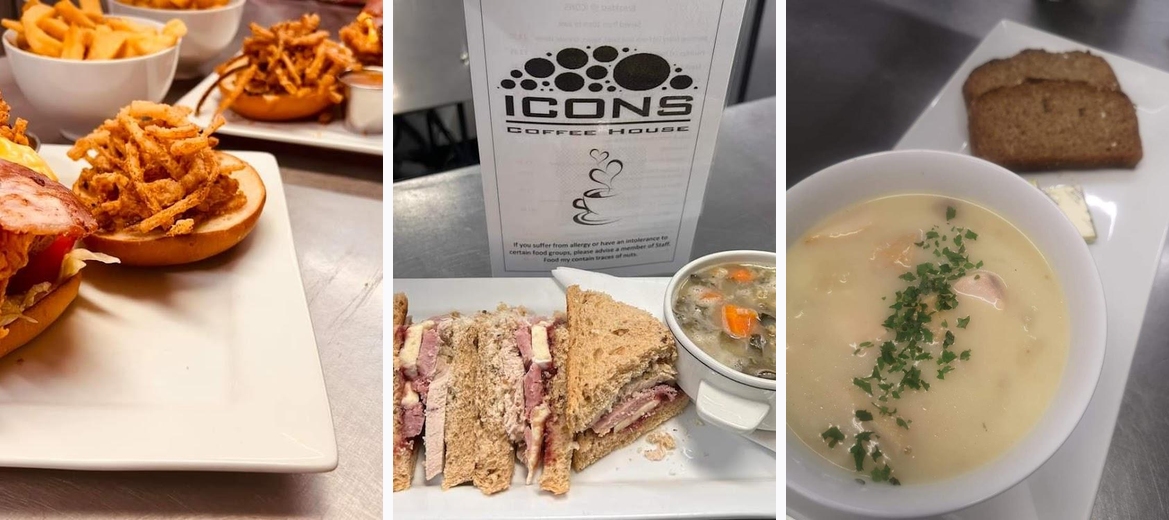 Discover Icons Coffee Shop in Lurgan—your go-to spot for delicious traybakes, unbeatable cappuccinos, and mouthwatering omelettes! Enjoy friendly service, value for money, and a welcoming atmosphere. Visit us at 42 Church Pl or call +44 28 3834 7737 for a delightful experience!